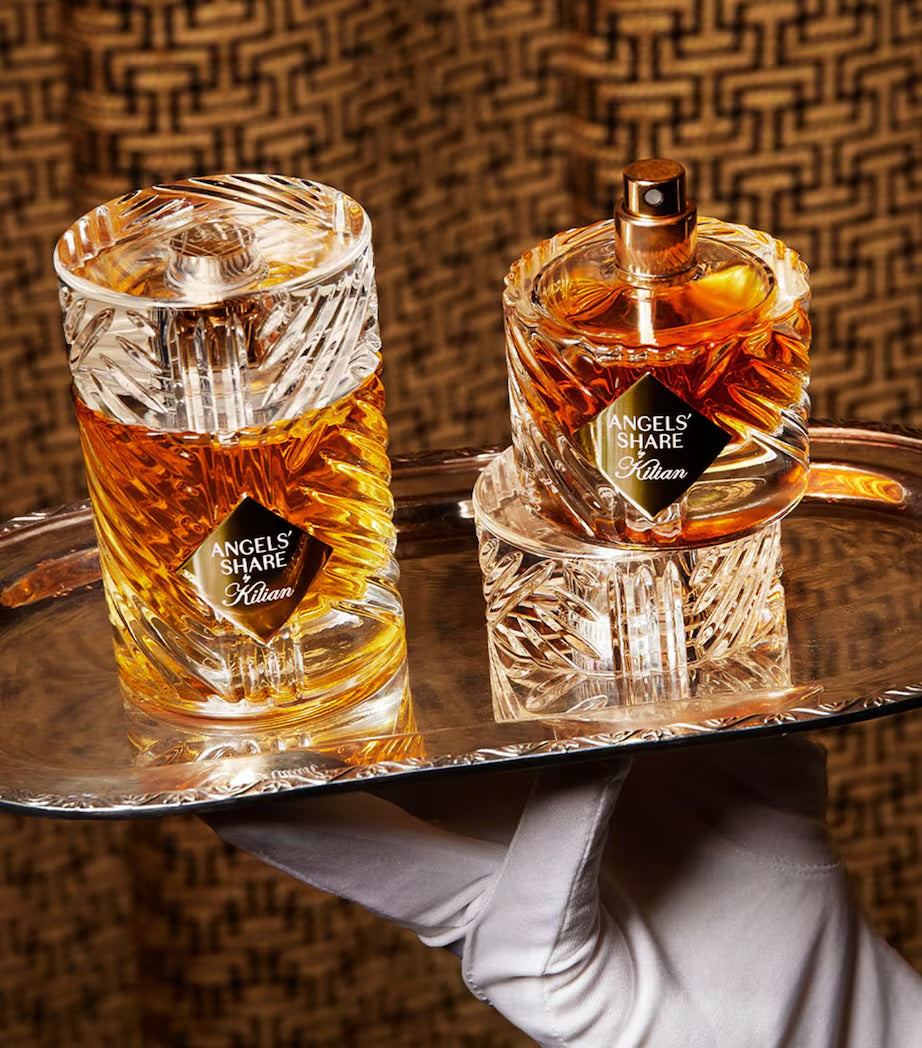 Part of Kilian’s Liquors Collection, Angels’ Share evokes the spirit, depth, and warmth of aged cognac. The name references the small amount of liquid that evaporates during barrel aging, the “angels’ share”, and this fragrance captures that fleeting, golden essence in an olfactive form.